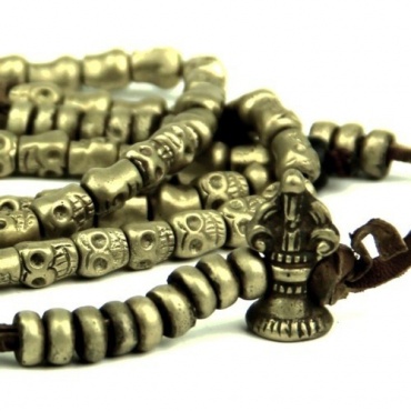 Collier bouddhiste en métal, aussi appelé mala, rosaire bouddhique ou chapelet. Il est l'un des attributs essentiels du pèlerin et d'un grand nombre de divinités du Toit du Monde.