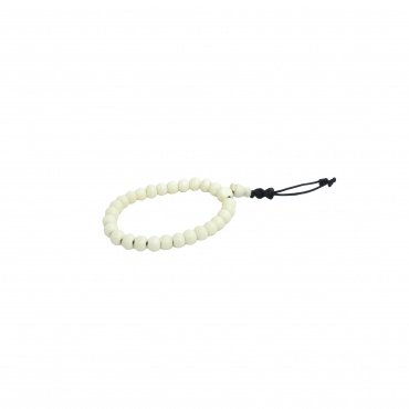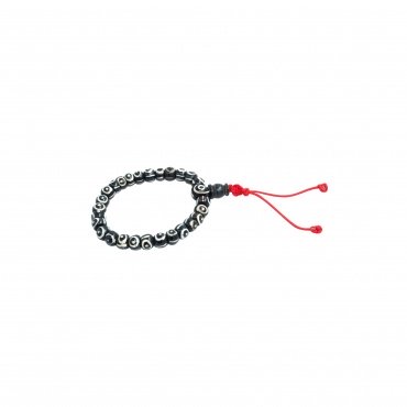 Mala bracelet en perles peintes, reliées par un cordon rouge ou noir (cela peut varier), la fermeture permet d'ajuster la taille du bracelet à tous les poignets.