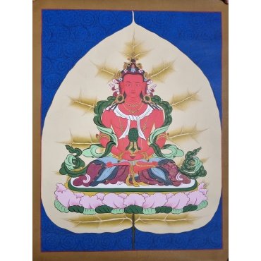 Thangka, peinture du Bouddha Amitabha, l'expression de la sagesse de la distinction. Amitabha perçoit la vacuité de tous les phénomènes, sans confusion, tels qu'ils se manifestent... Magnifique réalisation, précise et pure tel qu'Amitabha buddha